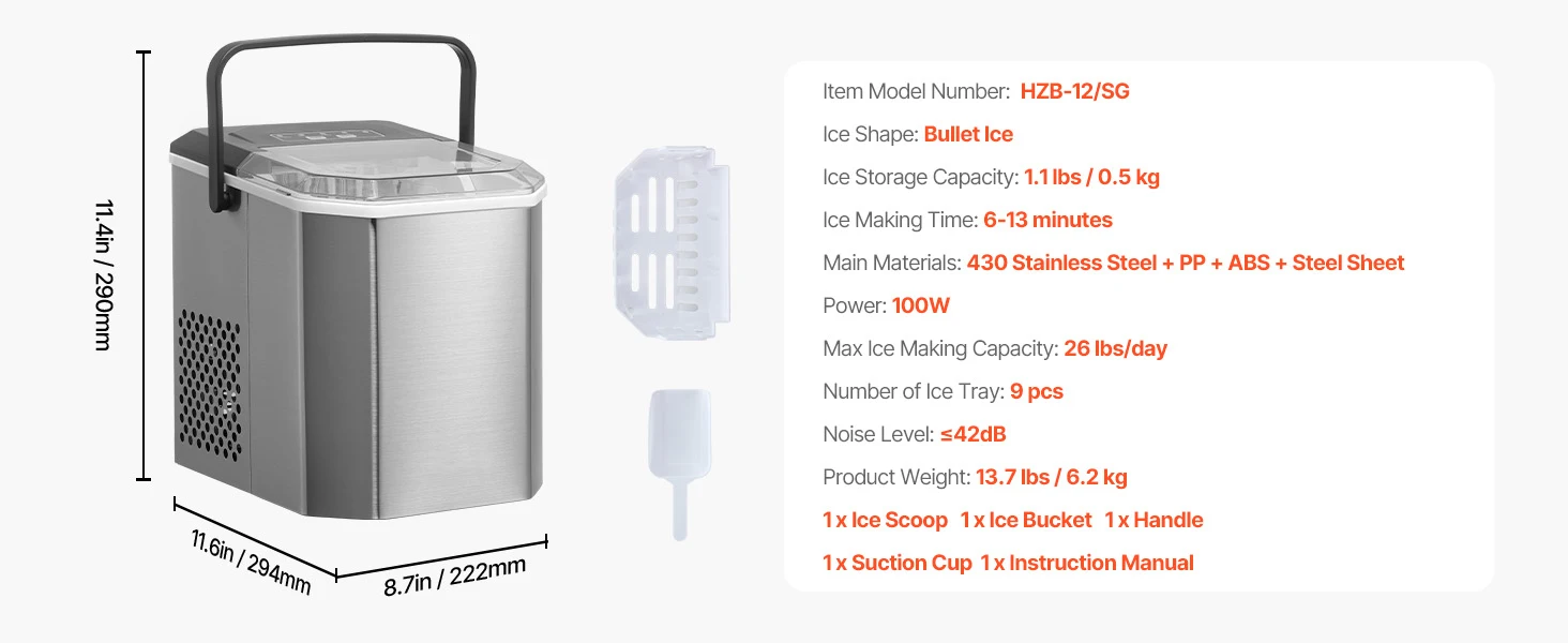VEVOR Ice Machine — 2 Sizes, Bullet Ice for Home, Office, Bar, and Parties
